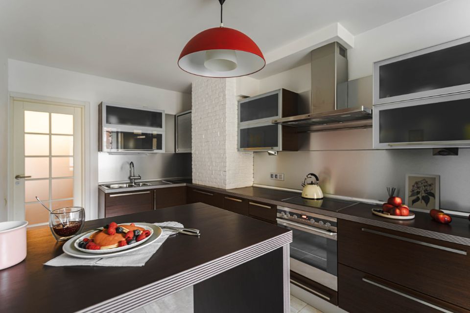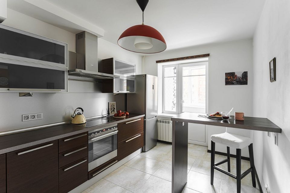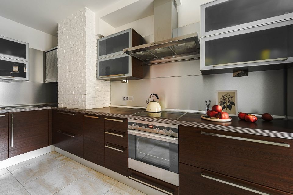 - холодильник, духовка и варочная панель, посудомоечная машина, чайник, посуда для приготовления и сервировки, столовые приборы;